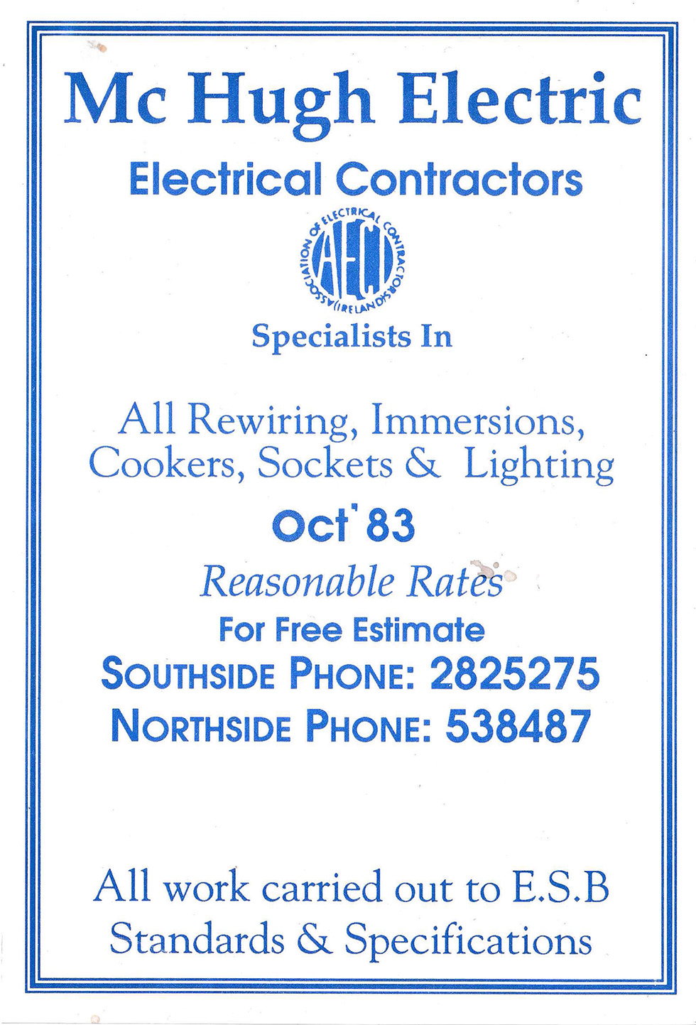 McHugh Renewables is trading under McHugh Electric, a family business that was established in 1983 by Willie McHugh. Since then, three generations of McHugh’s have worked for the company. For the past four decades McHugh Electric has completed domestic, commercial and industrial jobs throughout Dublin and around the country.